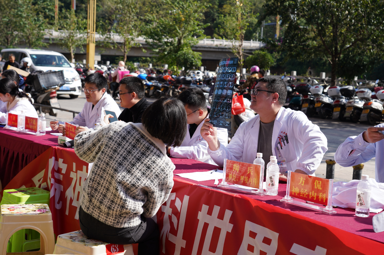 2023年10月29日是第18个“世界卒中日”,今年“世界卒中日”宣传主题是“卒中:重在预防”。为贯彻落实《健康中国行动(2019-2030年)》有关要求,积极推进脑卒中的防治工作,提升广大公众对脑血管病的知晓率,传播脑卒中的正确预防、救治及康复等相关知识与技能,中组部“组团式”医疗帮扶彝良县工作队长、彝良县人民医院院长方侃携上海、昆明对口支援专家及卒中中心专家于彝良县财富中心开展“2023年世界卒中日”主题义诊活动,将卒中防治理念传递给千家万户。