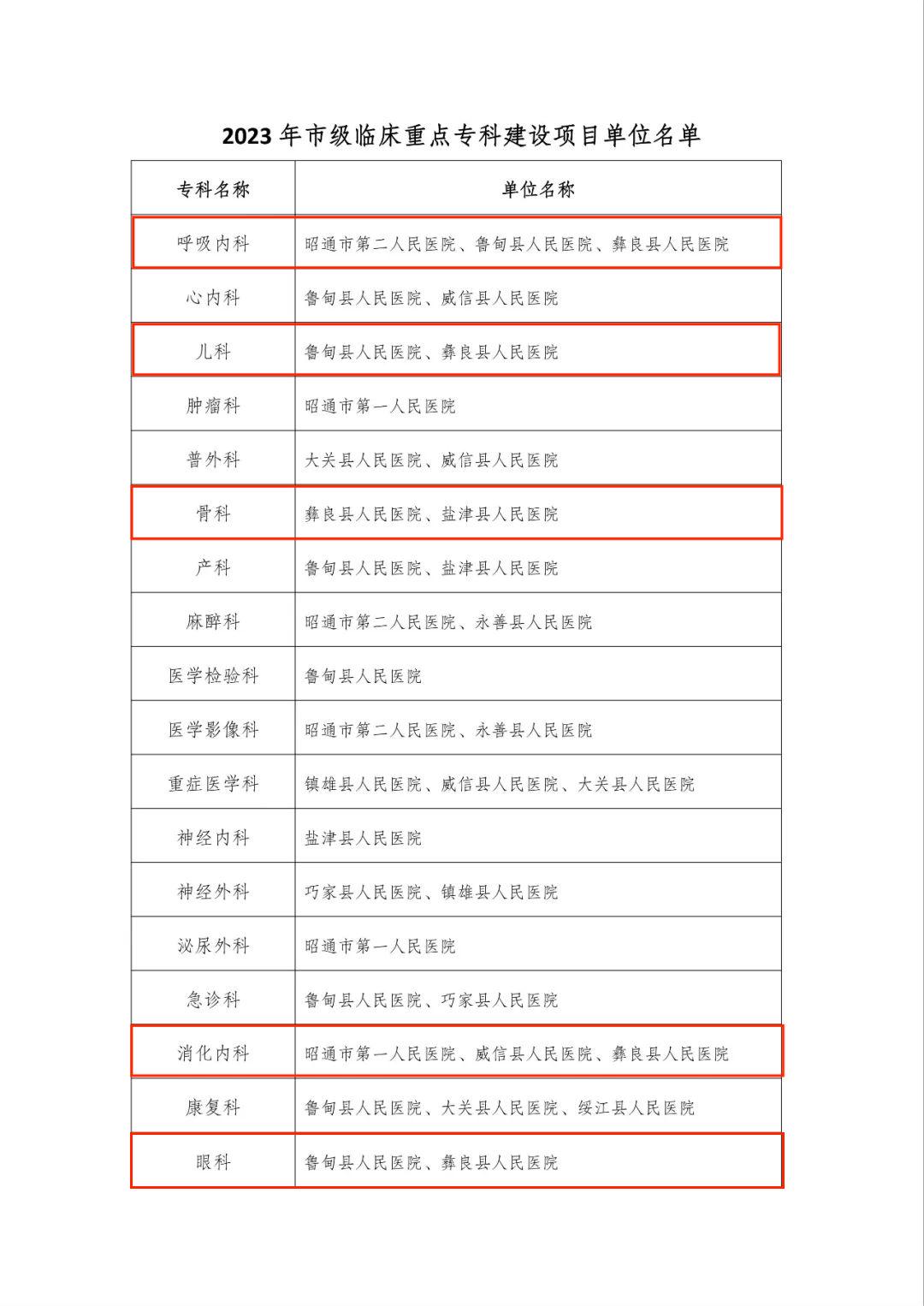 11月21日,昭通市卫生健康委员会下发的《昭通市2023年市级临床重点专科建设项目名单公示》,我院成功获批5个市级临床重点专科(呼吸内科、儿科、骨科、消化内科、眼科),这标志着我院专科建设迈上一个新台阶。