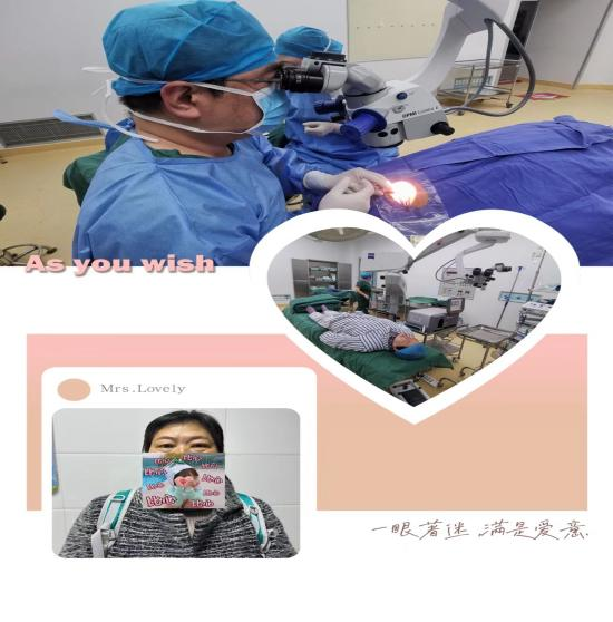 患者陈阿姨,今年62岁,双眼看东西越来越模糊,检查后发现双眼患有白内障和高度近视、老视,出于对手术的顾虑,10年来一直未做手术。直至今年,陈阿姨的右眼视力跌至0.05矫正0.1,视远、近都看不清楚,严重影响到日常生活。听到我院眼科有上海帮扶的专家,12月28日下午,遂前来就诊。结合患者病情及需求,上海帮扶专家唐敏博士,仅用10分钟,就成功为患者行右眼白内障超声乳化摘除术+人工晶体植入术,术中植入一枚双焦白内障人工晶体。术后远视力1.0、近视力0.6,成功脱镜,满足看近看远的需要,为患者提供高质量的视觉效果。