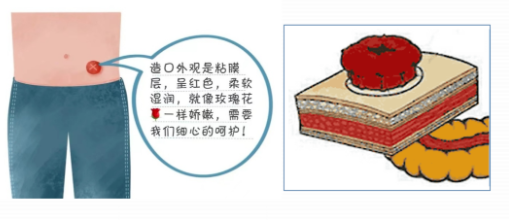 肠造口是指在腹壁作切口,并将一段肠管拉出切口外,翻转缝于腹壁形成的造口(俗称人工肛门),其作用是代替原来的会阴部肛门行使排便功能,形状类似一朵娇艳的玫瑰。