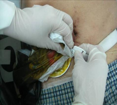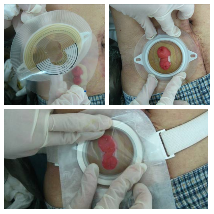 根据情况使用护肤粉、防漏膏、皮肤保护膜等附件产品(因手术初期造口与皮肤未长好,护肤粉要填满造口周围皮肤的缝隙,皮肤发红时一定要用护肤粉)。