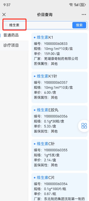 便民服务再升级|彝良县人民医院微信公众号上线药品和诊疗项目查询功能