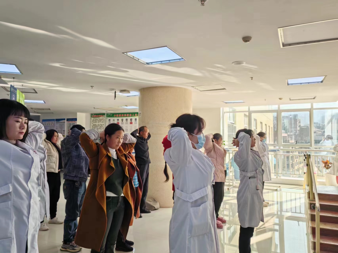 “道理”弄明白了,接下来活动正式开始。责任护士聂艳负责动作示范,其他护士负责纠正动作,这样一来,患者家属很快“上手”,动作逐步规范,为这份特别的“收获”喜笑颜开。