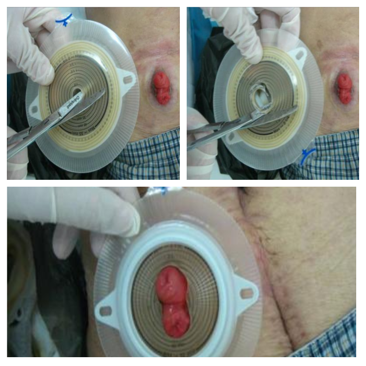 ◆测量尺测量造口大小、形状,并裁剪底盘。